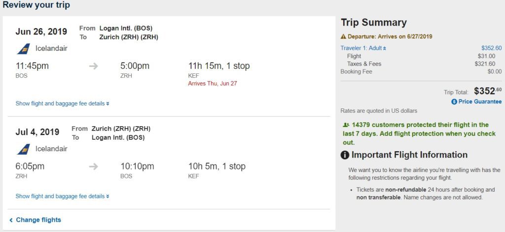 Often, Switzerland is considered a winter destination, given the country’s location in the Alps. However, those same mountains mean beautiful vistas, great hiking, and boating on some of Europe’s most beautiful waterways during mild sunny days. If you want to explore Switzerland this summer, IcelandAir has a fantastic deal for round trips flights to Zurich. With a minimum 6-day stay round trip tickets are as low as $394, which would be a bargain price even out of season. But if you want to stay longer, or maybe hop a train to visit other European destinations before returning, tickets are as low as $353 round trip starting at 8 days!