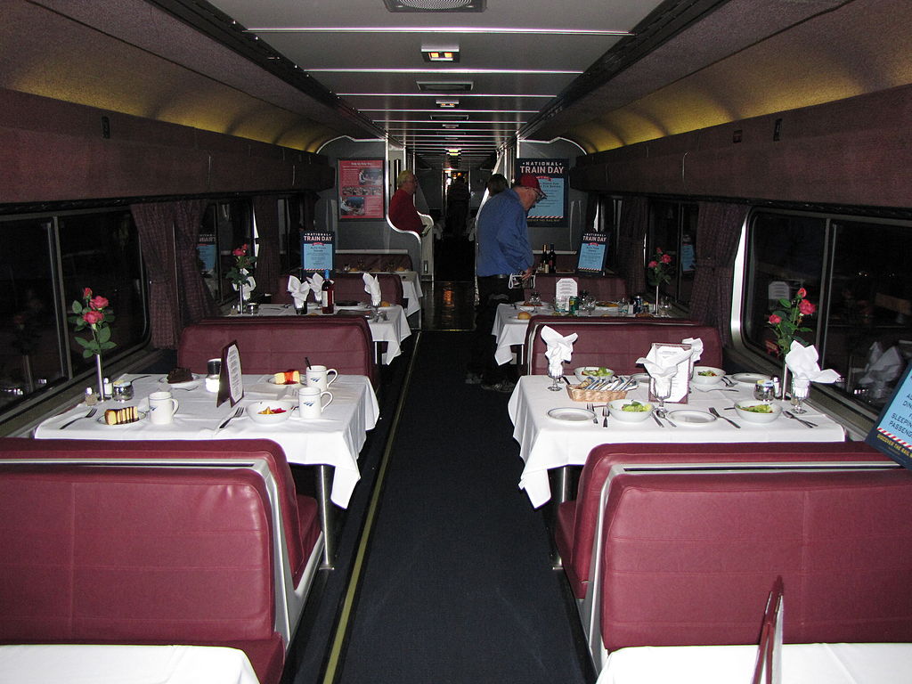 A view of the Auto Train dining car. Image courtesy of Ben Schumin via Wikimedia Commons.