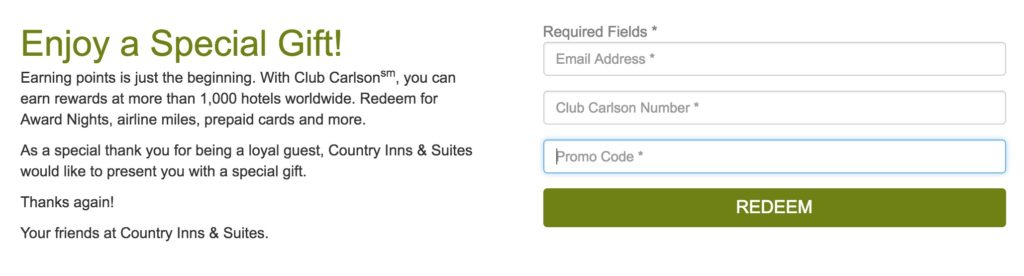 And it gave me 1000 bonus Club Carlson points. Of course, I tried it with my own email address and I was told that my entry was invalid, so unfortunately it does appear to be targeted. Still, if you have a Club Carlson account, I’d give it a try, since if you’re like me, it’s likely you threw out this brochure when it came in the mail 🙂