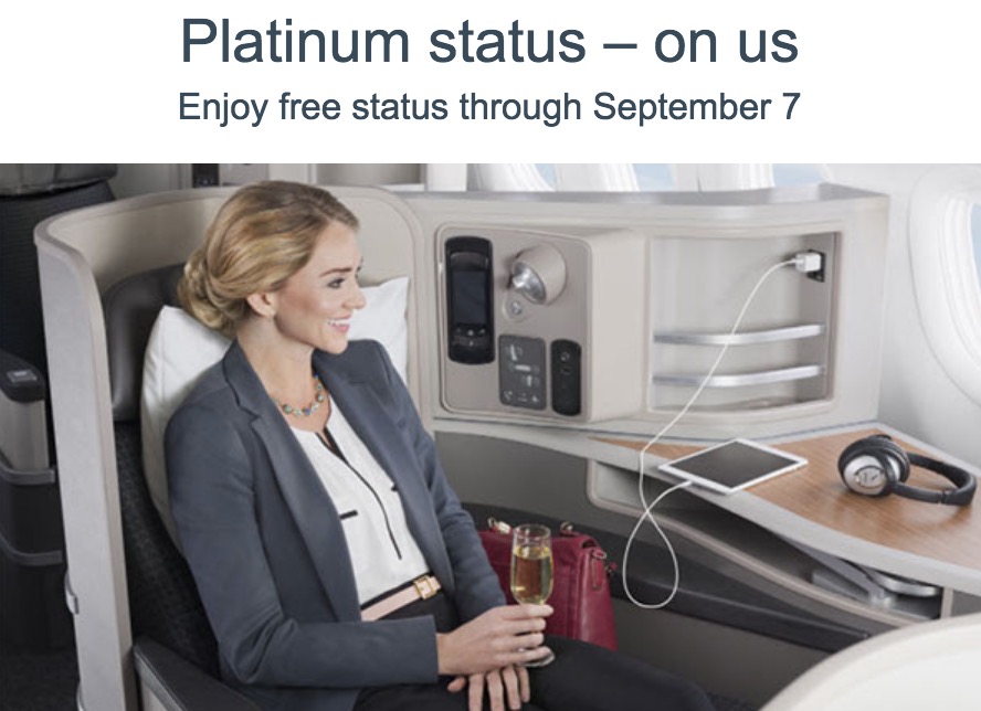I just received an email from American Airlines (subject line: Free Platinum Status for you), and they want to offer me free Platinum status!