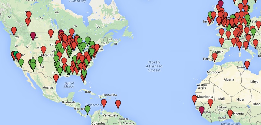 A few days later, Club Carlson announced that over 300 of their hotels were changing categories (most of them going up). I made a sortable table of the changes, and also a map of the Club Carlson hotel category changes