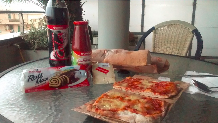 Then there was eating gelato at some random square with tons of artists selling things. It was so cool being in a country so different yet people were just living their modern lives around all that old stuff and history. And SO MUCH WALKING! (DAN: We really did walk a TON). Loved our pizza and cheese grocery store dinner at the 2 story hotel room.