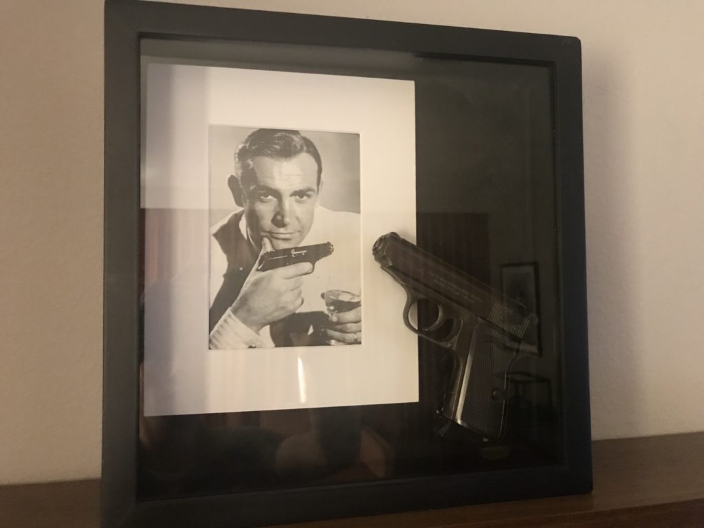 Note the picture above the wall. At least they picked the original (and arguably best) James Bond from the silver screen.