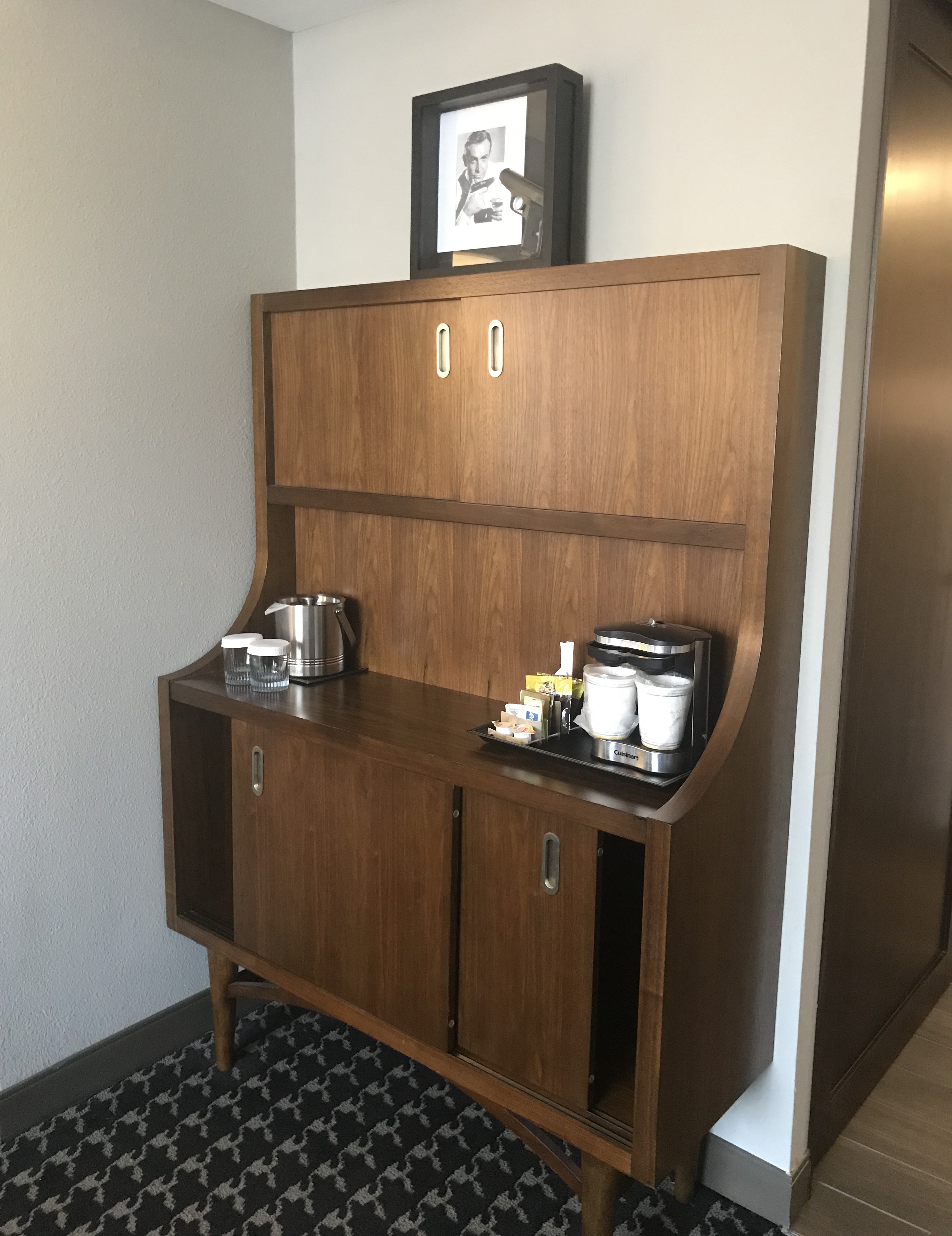 There is the man himself. Let’s hope the gun is just a model. It would be slightly disconcerting to have a real firearm available to anyone who entered the hotel room. Theming the room with a character from the 60s and 70s fits right in with the rest of the retro feel of the hotel.