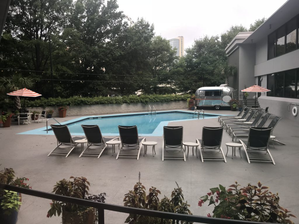We enjoyed the pool our first night at The American Hotel Atlanta Downtown. It’s not very large, but there was hardly anyone else out there during the hour we were swimming. Note the Airstream trailer in the corner.