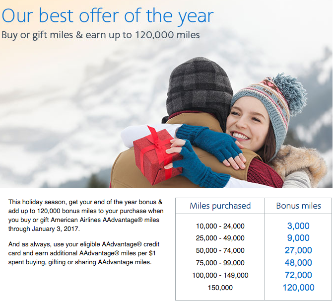 3) Purchase American AAdvantage miles and earn up to 120,000 bonus miles prior to January 3, 2017.