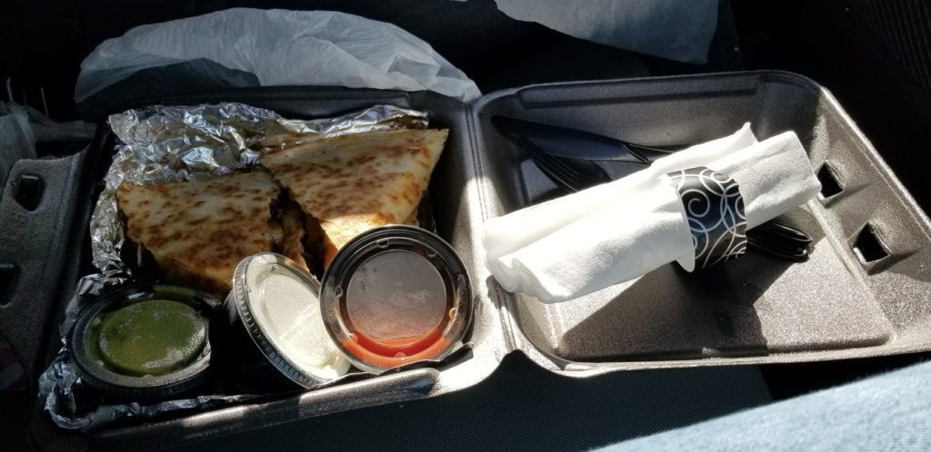 It was only $12 which (while more expensive than I like to pay) did not seem overly outrageous, even for a non-airport location. I was full after that but Angelina “made” me get steak quesadillas to go 😛