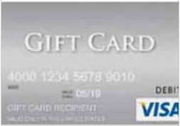 - Major retailer gift card (Amazon, Walmart , Target, etc)