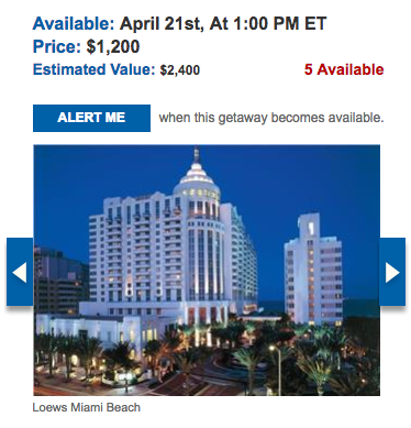 Today’s 2017 Daily Getaway sale is with Loews Miami Beach. You can access the sale and details here. The package will go on sale at 1PM ET today.