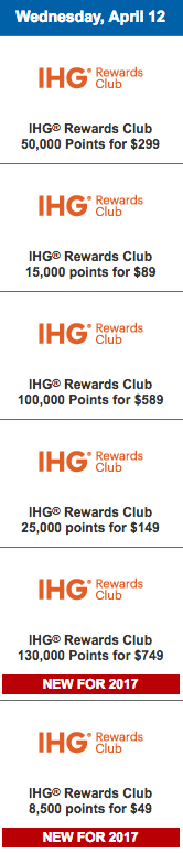 - 25,000 IHG points for $149Â (~0.596Â cents per point), 750 available, maximum 4 packages.