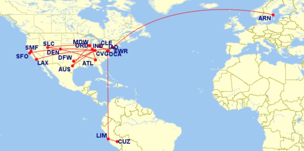 Here is my airline flight map for 2017, courtesy of GCMap – 30 segments and 32,619 miles
