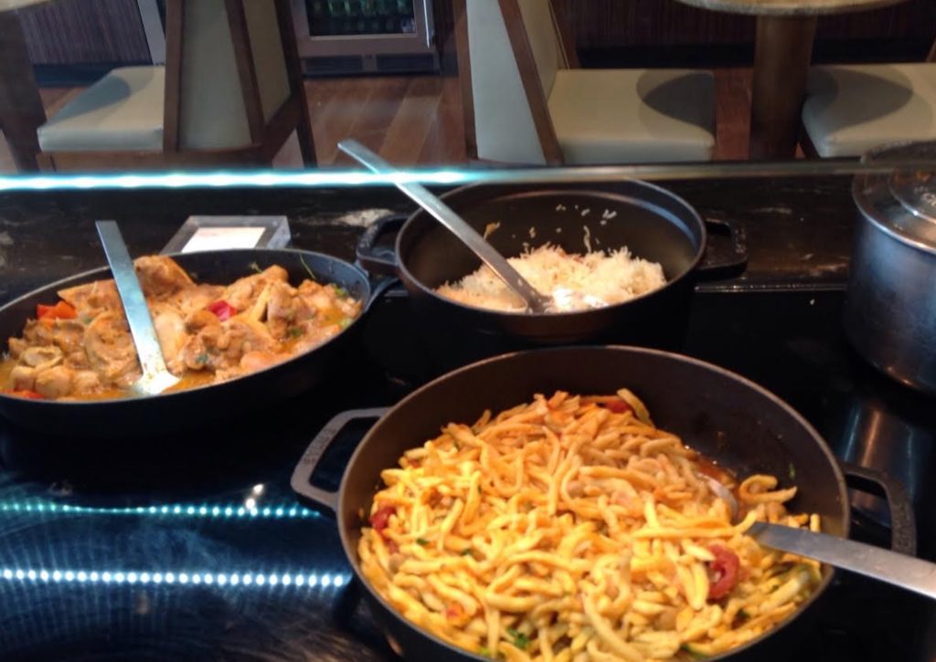 The spread was awesome, with hot and cold entrees. We had the chicken stew, tomato soup, both a little spicy, hummus and pita bread, and a variety of fruits. There were also cold salads.