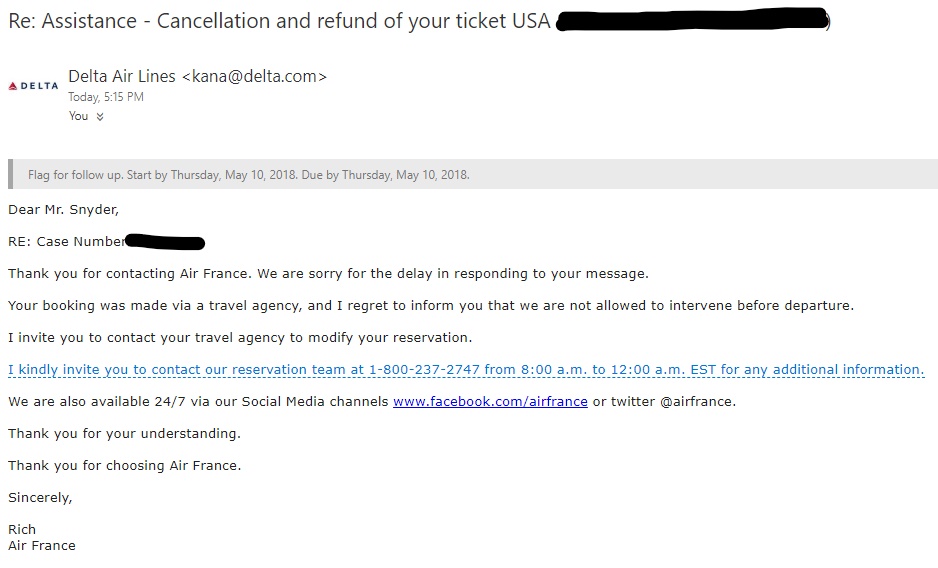 A few days later I unexpectedly got an email from Air France saying they had received my service request and that they couldn’t do anything.