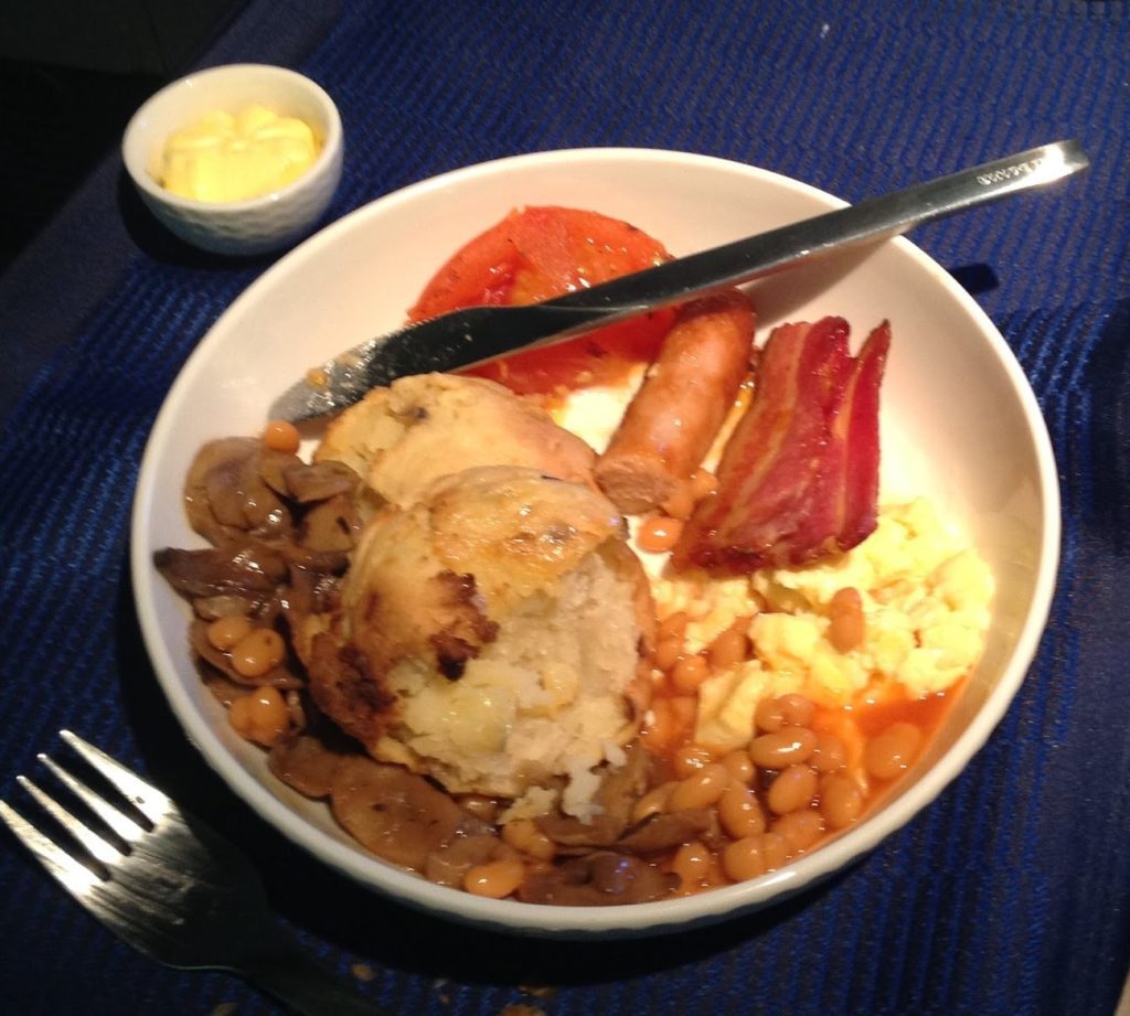 Breakfast had an appetizer, then the main course. I thought it was good, but small. Yet I am sure it was better than the main cabin, which probably had peanuts.