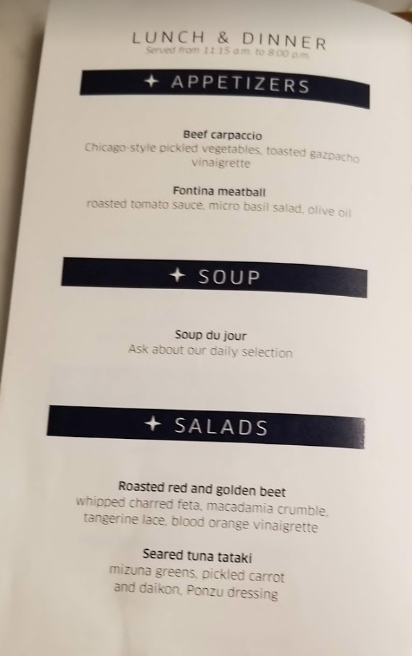 United Polaris Business Class Lounge ORD food