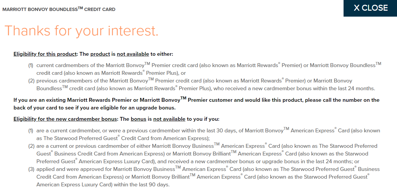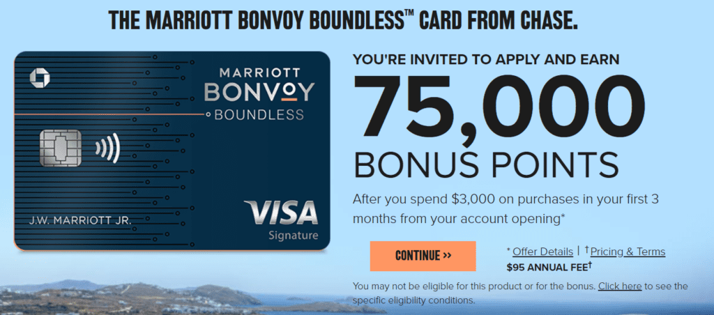 Remember, Chase and American Express have gotten pretty strict on the welcome bonuses for these cards. Here’s the terms for the Chase Bonvoy Boundless:
