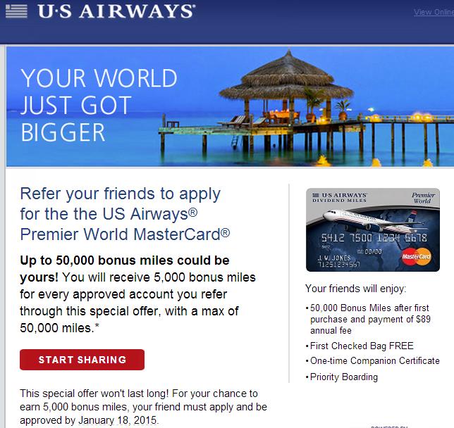 I got an email a few days ago about a new US Airways Mastercard refer a friend offer