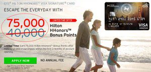 The Citibank Hilton HHonors card, which typically has a 40,000 point bonus, is now up to a 75,000 Hilton HHonors point bonus
