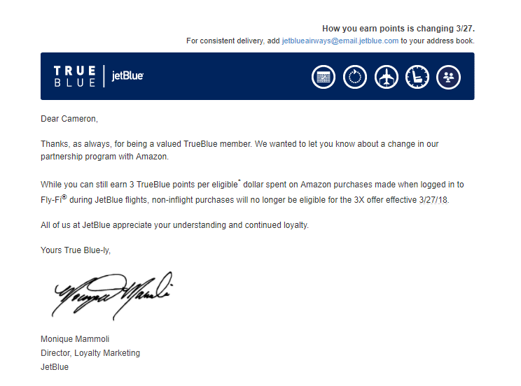 Guys, we knew this was coming. No more Amazon shopping portal for JetBlue points. The good things never seem to last, do they?