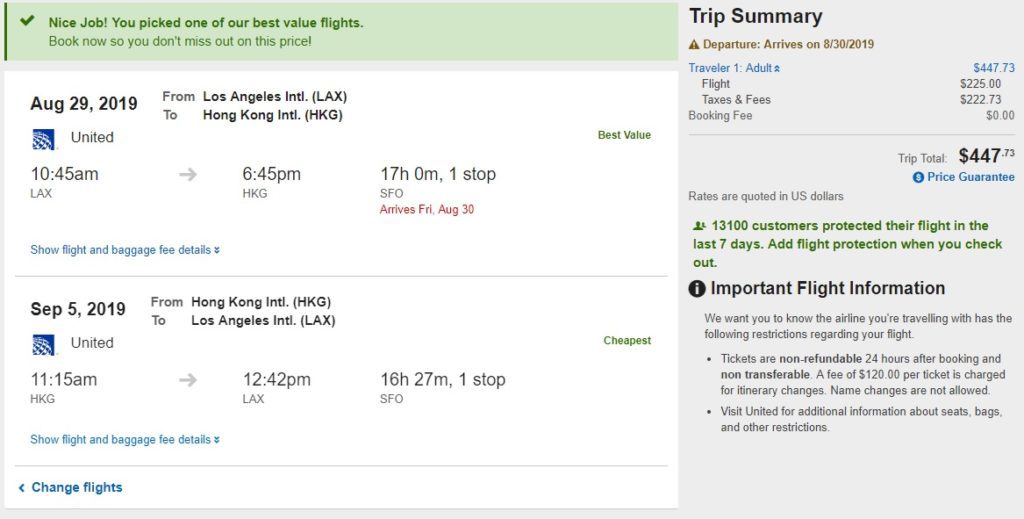 These are main cabin economy fares, which are still standard on trans-Pacific routes. That means seat selection and 2 checked bags are included, perfect for family vacations. The absolute lowest prices are available through United directly from Google Flights, however some dates fail to show once you click through. The slightly ($4 – $7) higher prices show on Orbitz on those dates. Most of these fares should be available for booking for awhile, though the L.A. flights could start creeping up again shortly, so book now if necessary.