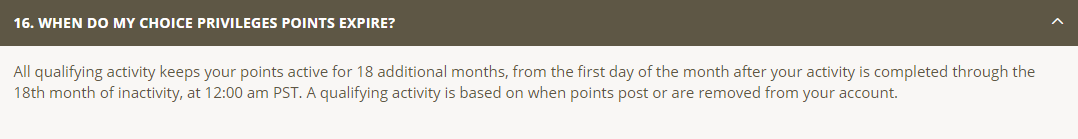 Yes. Credit card points count as qualifying activity and reset the clock. Choice Points will expire if you have 18 months of inactivity.