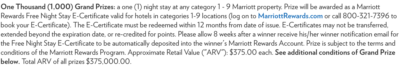 1,000 lucky members will win one (1) night stay at any category 1 – 9 Marriott property worldwide! Below is detailed information about the prize.