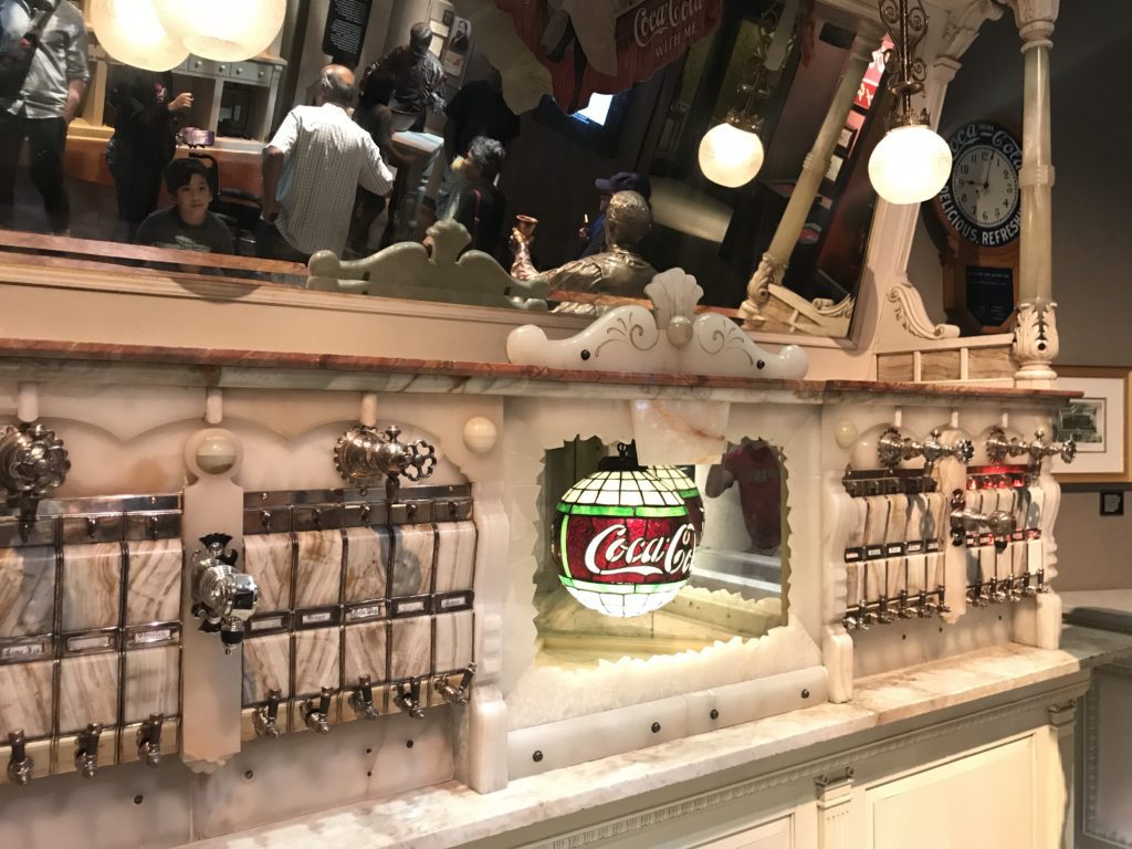 It also amazes me that Coca Cola has around 900 bottling plants around the globe and its products are sold in all but 3 countries in the world (any guesses which these are?) I knew they have a global reach, but that blew my mind. There are some really cool vintage Coke memorabilia, including this beautiful soda fountain.
