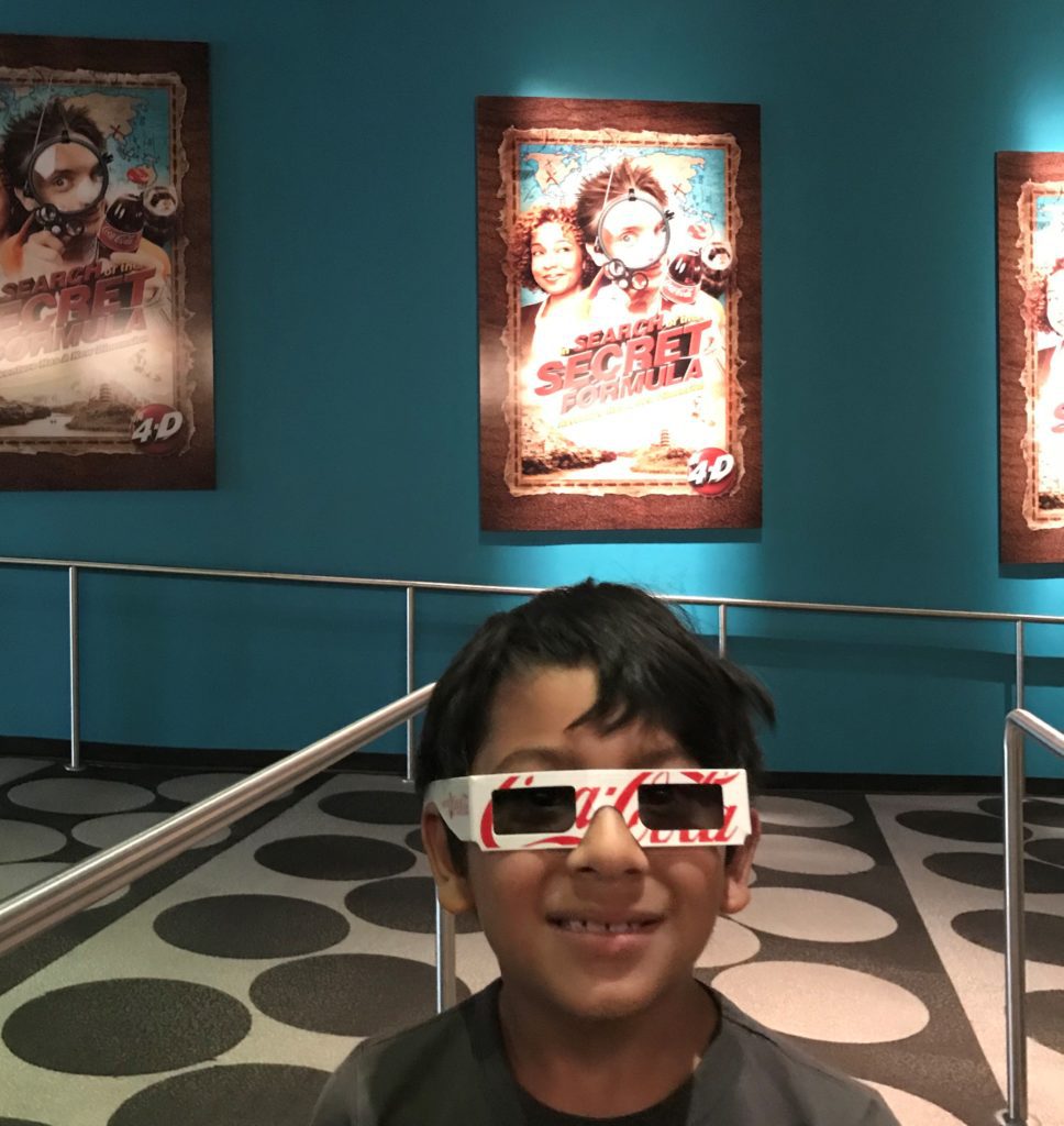 My son’s favorite part was the short film showing in a 4-D theater. It is totally geared towards kids his age. It is about as cheesy as they come, and, like everything else, pretty much just an extended advertisement for Coca Cola. But he liked it so much we endured watched it again.