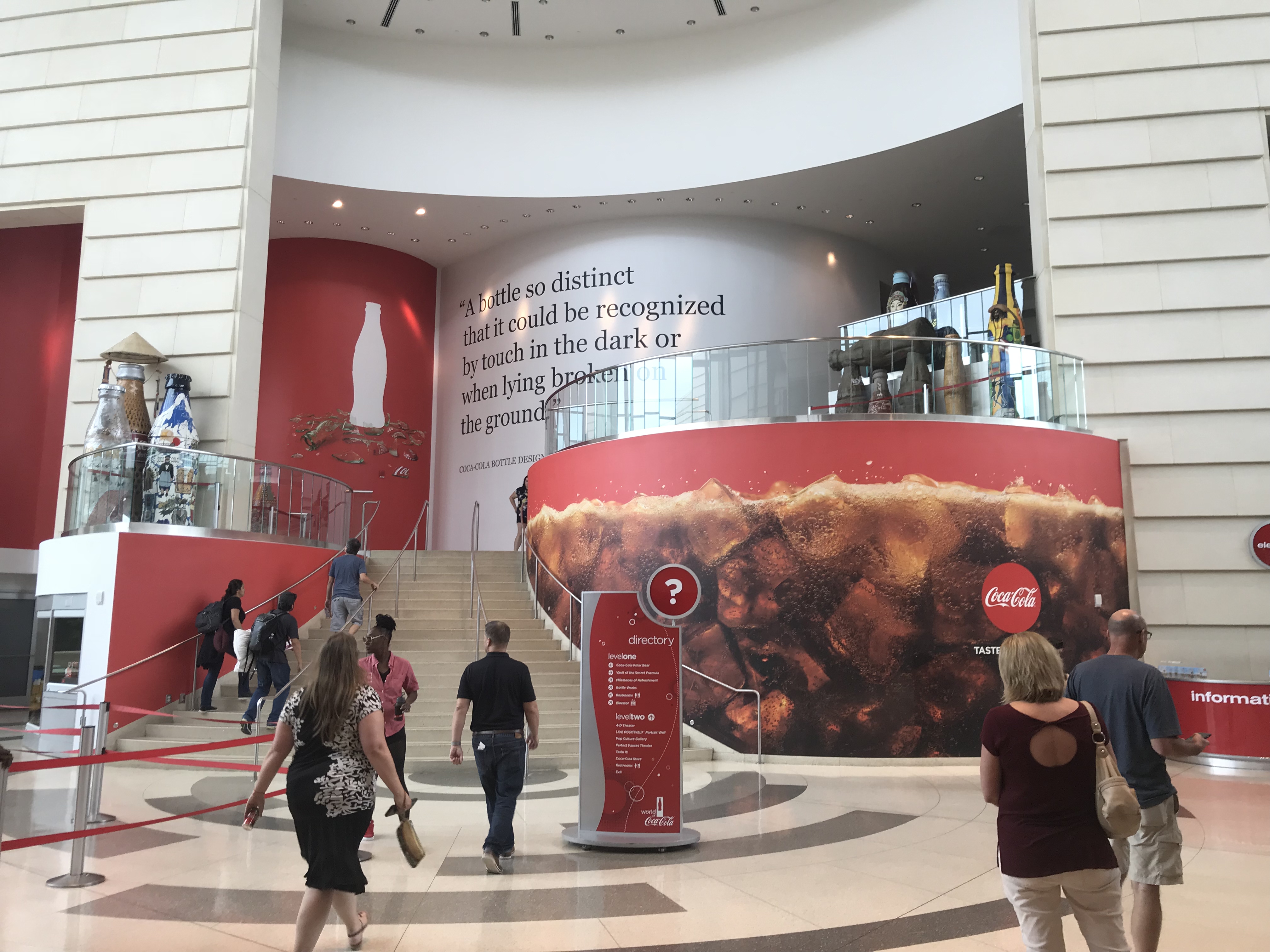 Once the advertisement movie is over, you exit to the central atrium of the World of Coca Cola. From there you can visit the different exhibits. These include The Vault, the Bottle Works, and the Milestones of Refreshment, among others. the atrium is honestly pretty cool.