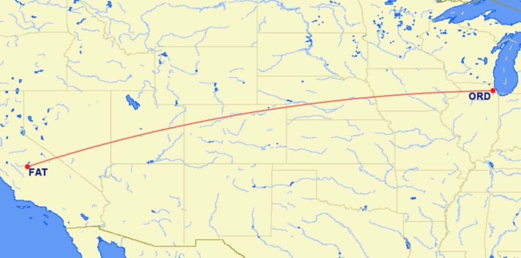 Even though I make an attempt to keep my av-geekinees contained, I often cannot help myself. Last week a couple coworkers and I were lamenting the experience of flying regional jets. Since one is from the central valley of California, I dug into my box of useless trivia and unearthed the fact that United operates a nonstop flight between Chicago and Fresno, a distance of over 1,700 miles. Using? Yep. A regional jet.